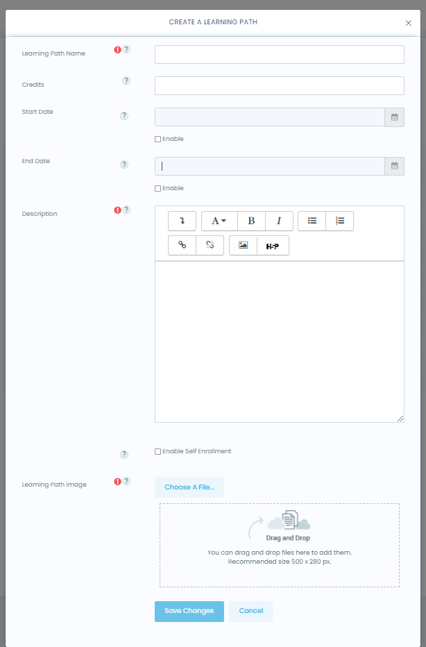 • If you thick to enable a start date, this will allow you to add a start date or end date for this Learning Path.