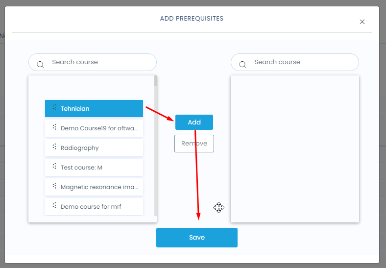 • Select the courses you want to add as prerequisites for the course selected above.