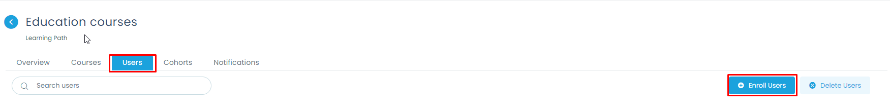 If you need to add a user to a Learning path, Click on the “Users” Tab.
