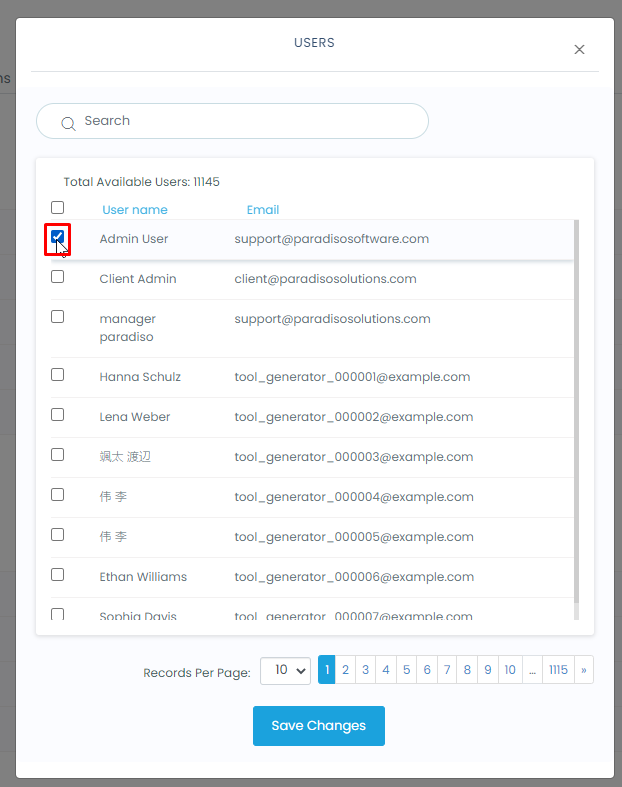 Once you finish checking the users you want. Click on save.