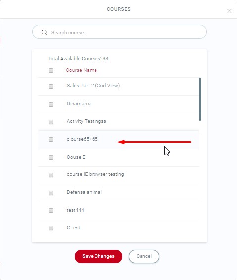 Click on the “Enroll Users” button at the right and a pop up will emerge with the list of users available to enroll in the Learning path