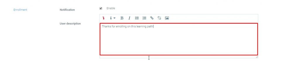 • Enrollment:  informs a user when it has been enrolled in a Learning Path