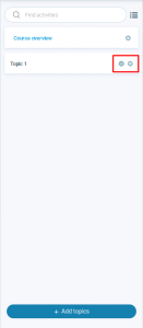 • When you build content inside a topic you have to click on the “+” icon beside the topic name.