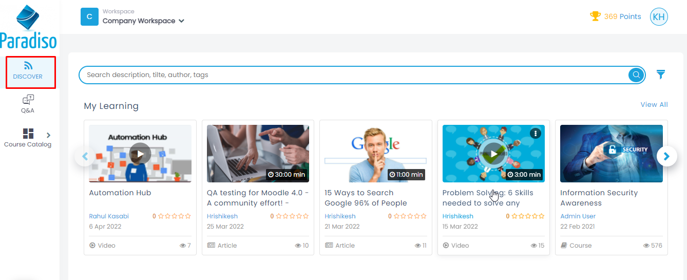 • Step 1:  Click on “Discover” for the new feature in our LMS “LXP”