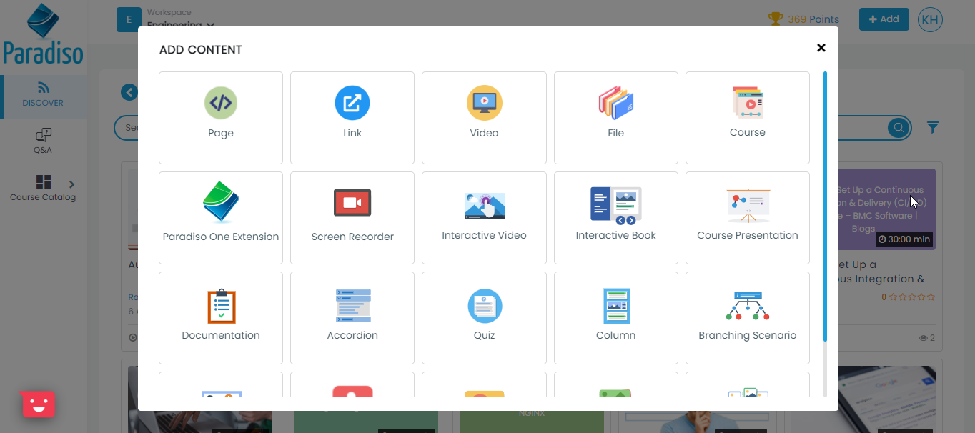 • User-Generated Content: Subject matter experts channel their knowledge by allowing them to create and share content with their peers. Formal learning such as eLearning courses, videos, and manuals offer tremendous value, but pose the risk of being both time consuming and expensive to create. Moment-of-need microlearning in the form of user-generated content can provide low cost but high impact resources to learners through the LXP. Organization and individual learners will benefit when employees have the chance to build relationships and share knowledge with one another, facilitated by your LXP.