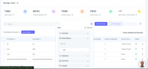 - Admin can filter the multitenant user records by applying the ‘Entire LMS Peoples’ filter, in this filter, it will list all the available tenants in the LMS.