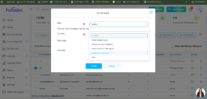 - Select the user from the list and click on the ‘Enroll user’ button then the admin can able to search for a course in which the admin wants to enroll.