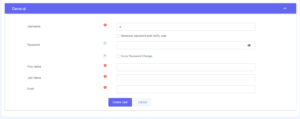 - Admin can create a new user by clicking on the ‘New user’ button from the page.