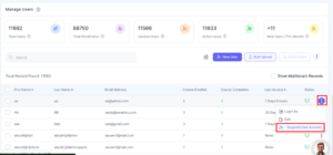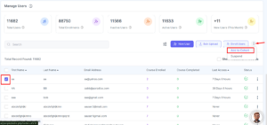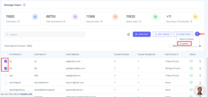 - Admin can able to add users to the course by selecting the user and clicking on the ‘Enroll’ button from the enabled option from the top menu.