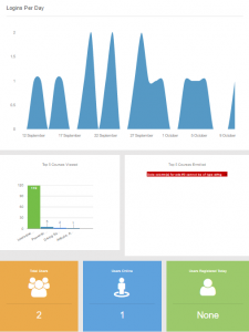 • You have your Courses reports which are to draw data from your courses. Some examples are Course overview, Most popular Courses by enrollment and Views, Quiz overview, Video Reports