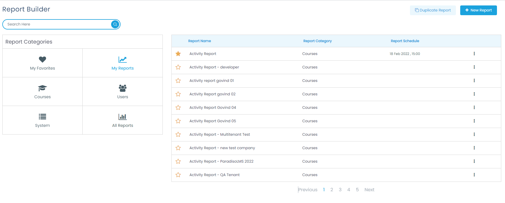 • My favorites: as the name suggests is where you can keep your most accessed reports. You can add or remove them to this tab by clicking on b00ee4e89b874c32984b661edcafa5631orea2f08f7cf8a4c538ee5fc9633bea6f11 icon to the left of the report to tag or un-tag as favorite.