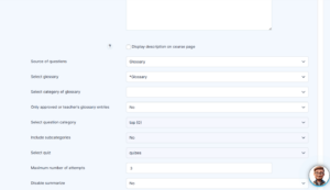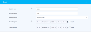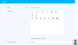 Once the activity is added to the course, you can configure its behavior, questions, and appearance. You will find the following settings: