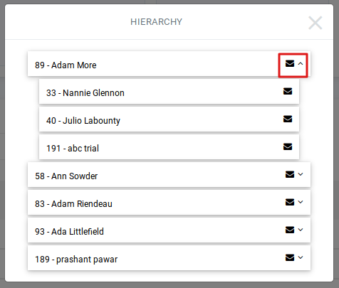 There is a message feature on Hierarchy pop-up. You can send message to the available users on Hierarchy pop-up.