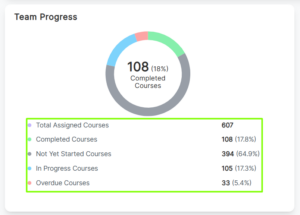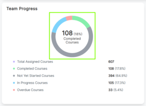 The Team Progress Block provides Managers with a consolidated and visual overview of their team’s course progress.