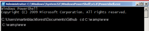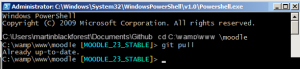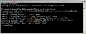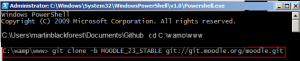 The file path shown in your black box (“Windows power shell”) is where Git has made your personal repository. You can download LMS into there if you wish, but you will then have to copy the LMS folder into your wampserver directory. Instead, we will download LMS straight into the www folder of our wampserver directory.