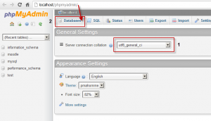 1.Make sure that Server connection collation says “utf8_general_ci” (1 in Screenshot B below)