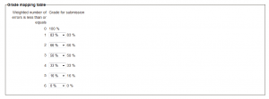 -times. Course facilitators define a mapping table that converts the number of failed assertions to a percent grade for the given submission. Zero failed assertion is always mapped to 100% grade.